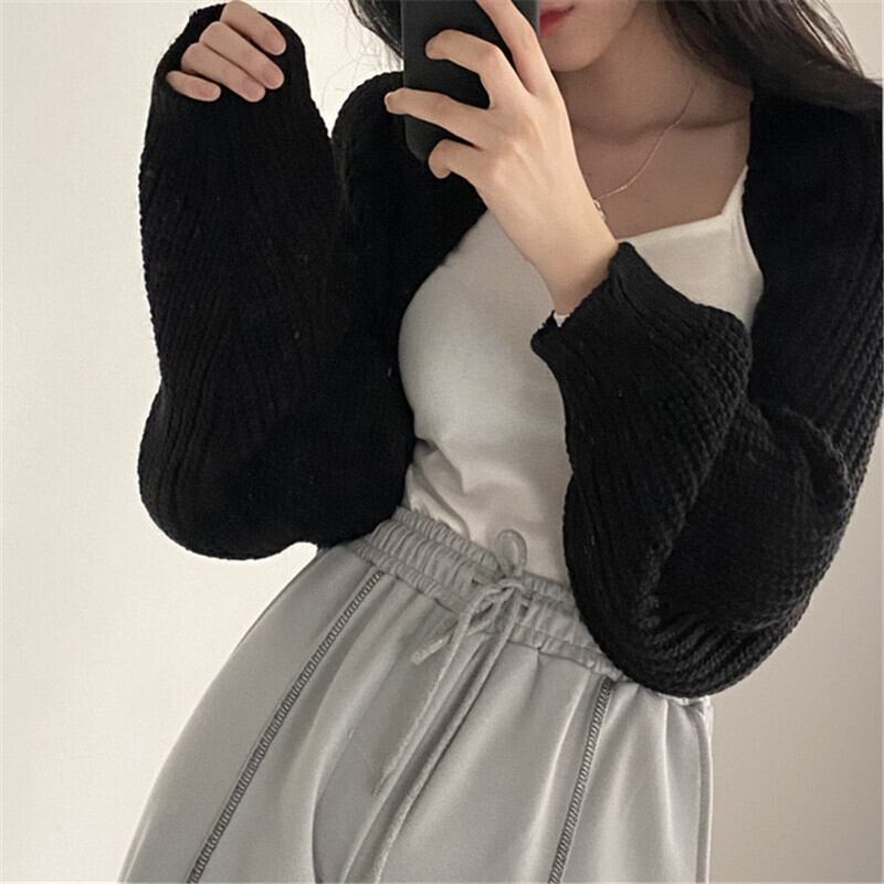 トップス ボレロ ニットカーディガン カーディガン クロップド丈 袖あり 長袖 ボリューム袖 Vネック 襟付き ワイド 前開き ニット 厚手 大人可愛い きれいめ シンプル カジュアル 大人 上品 お洒落 大人女子 こなれ感 ラフ ガーリー ルーズ 主役級 抜け感 無地 春 秋 冬 20代 30代 40代 ママ 通学 デート お出かけ 女子会 休日 旅行 着回し 普段使い 重ね着 オルチャン 楽ちん 暖かい 体系カバー 定番 トレンド 流行 インスタ映え ワンサイズ ゆったり グレー ベージュ ブラック