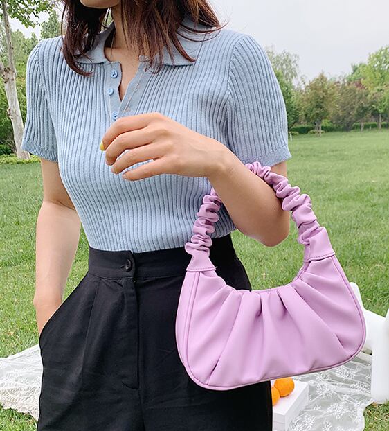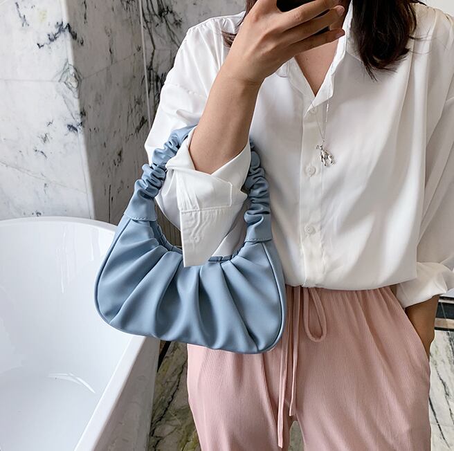ギャザーハンドル コンパクト PU かわいい 大人可愛い 上品 お洒落 大人女子 こなれ感 キュート ガーリー デート お出かけ 韓国系 ファッション 高見え 小さめ 白 ホワイト 黒 ブラック 青 ブルー 紫 パープル AS10184