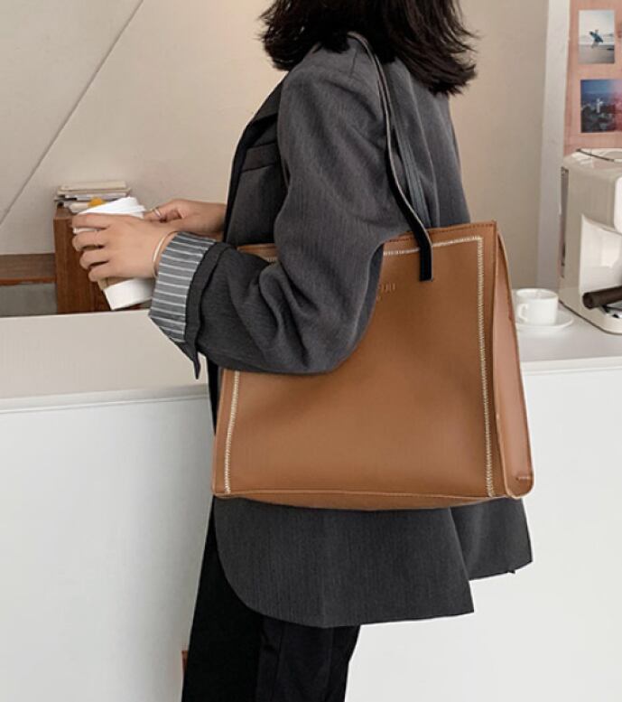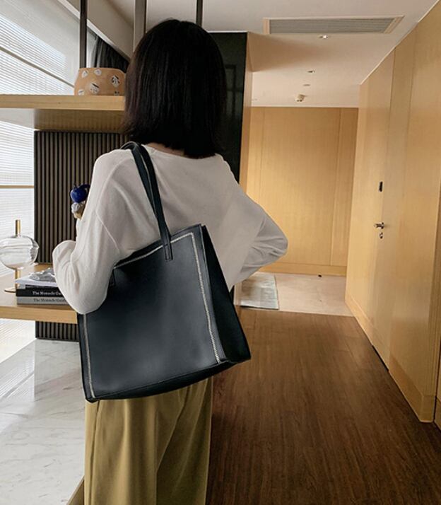 PUレザー トートバッグ シンプル 通勤バッグ 肩がけ シンプル 上品 おしゃれ かっこいい 大人女子 こなれ感 クール モード系 通学 デイリー オールシーズン 大きめ 白 ホワイト 黒 ブラック 茶色 ブラウン ベージュ AS10186