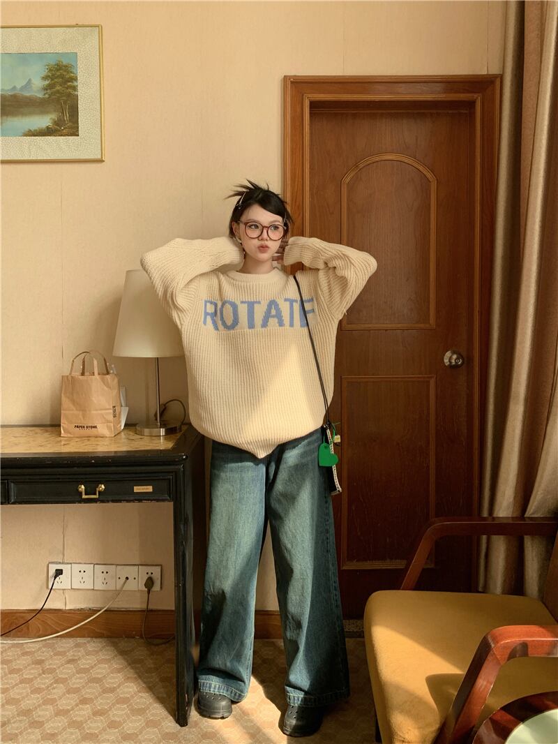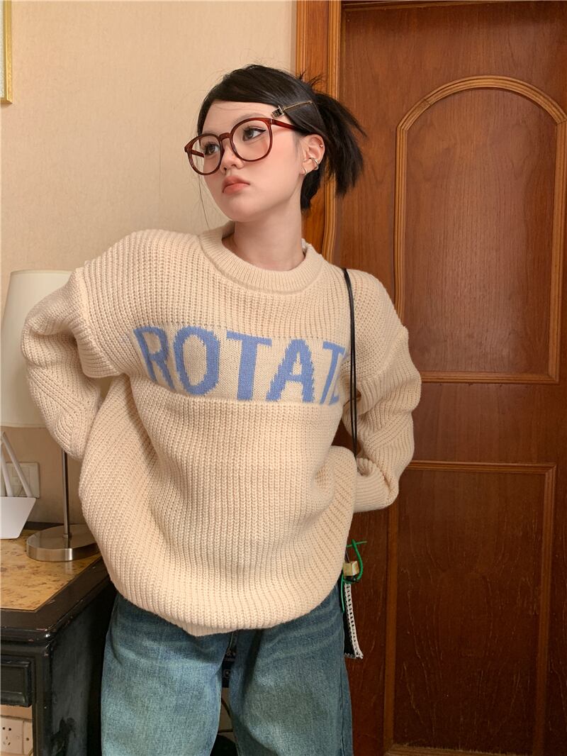 プルオーバーセーター アメリカンレトロ トップス セーター プルオーバー 袖あり 長袖 萌袖 Uネック ラウンドネック ワイド Iライン ニット 厚手 かわいい 大人可愛い シンプル カジュアル 大人 おしゃれ お洒落 レトロ 大人可愛い 大人女子 こなれ感 ラフ ボーイッシュ キュート ガーリー 主役級 存在感 プリント 秋 冬 10代 20代 30代 40代 レディース 女性用 ママ マタニティ OL 通勤 学生 通学 お出かけ 公園デビュー 女子会 お泊まり 休日