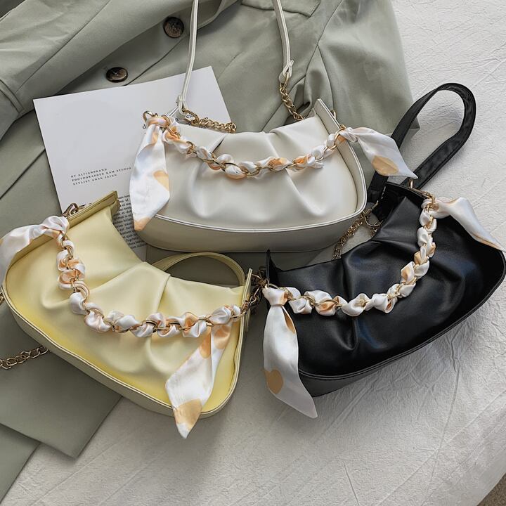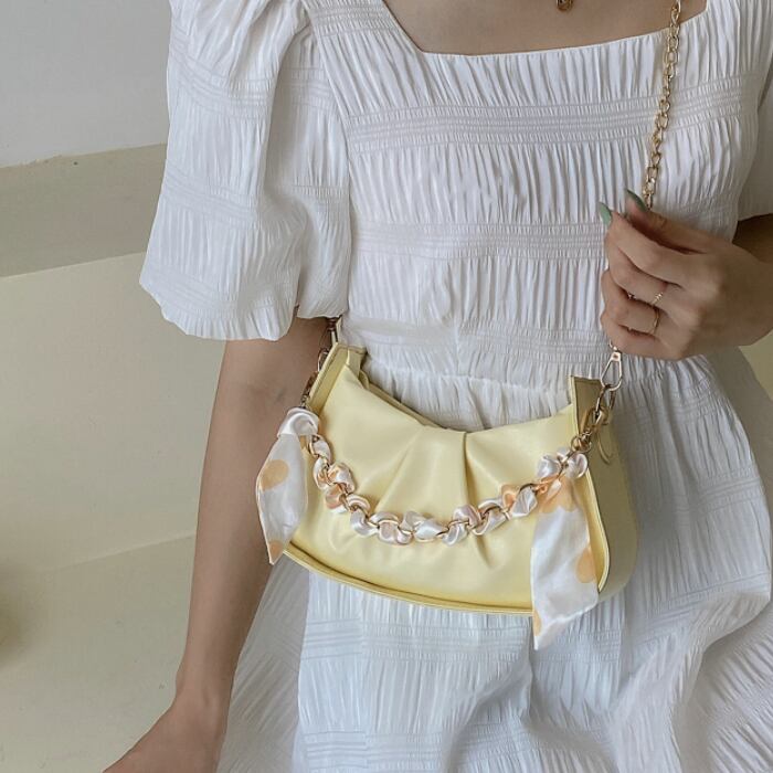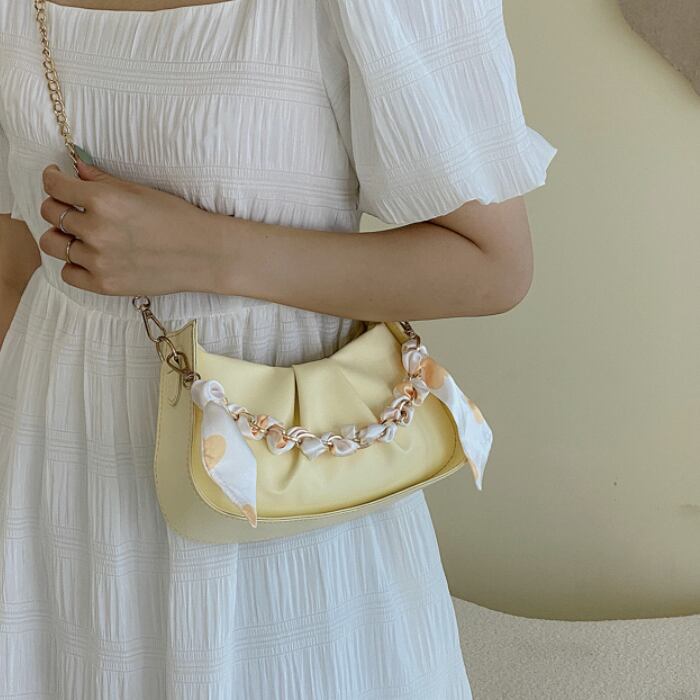 チェーン スカーフ ハンドバッグ ショルダーバッグ 2way 斜めがけ PU 大人可愛い 上品 おしゃれ キュート ガーリー デート お出かけ 旅行 小さめ 白 ホワイト 黒 ブラック 黄色 イエロー AS10195