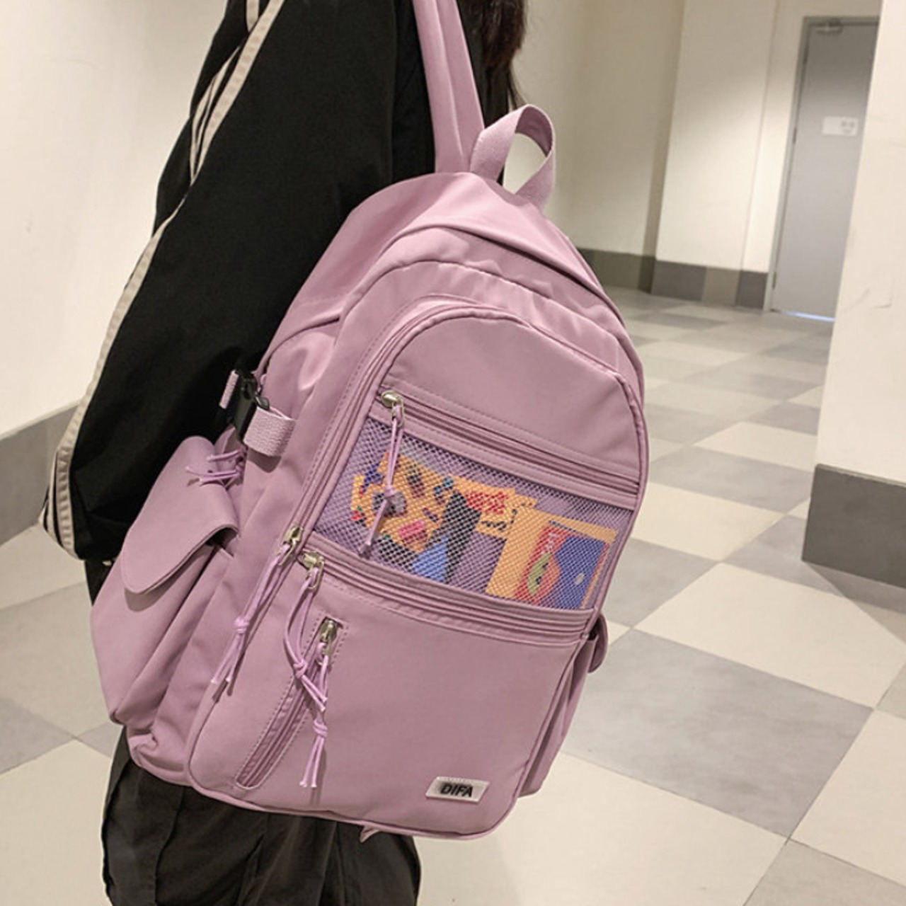 メッシュポケット バックパック リュック 大容量 機能性 便利 ナイロン カジュアル おしゃれ かっこいい ラフ メンズライク ボーイッシュ スポーティー ユニセックス 通勤 通学 デイリー 普段使い 白 ホワイト 黒 ブラック 青 ブルー 紫 パープル AS10198