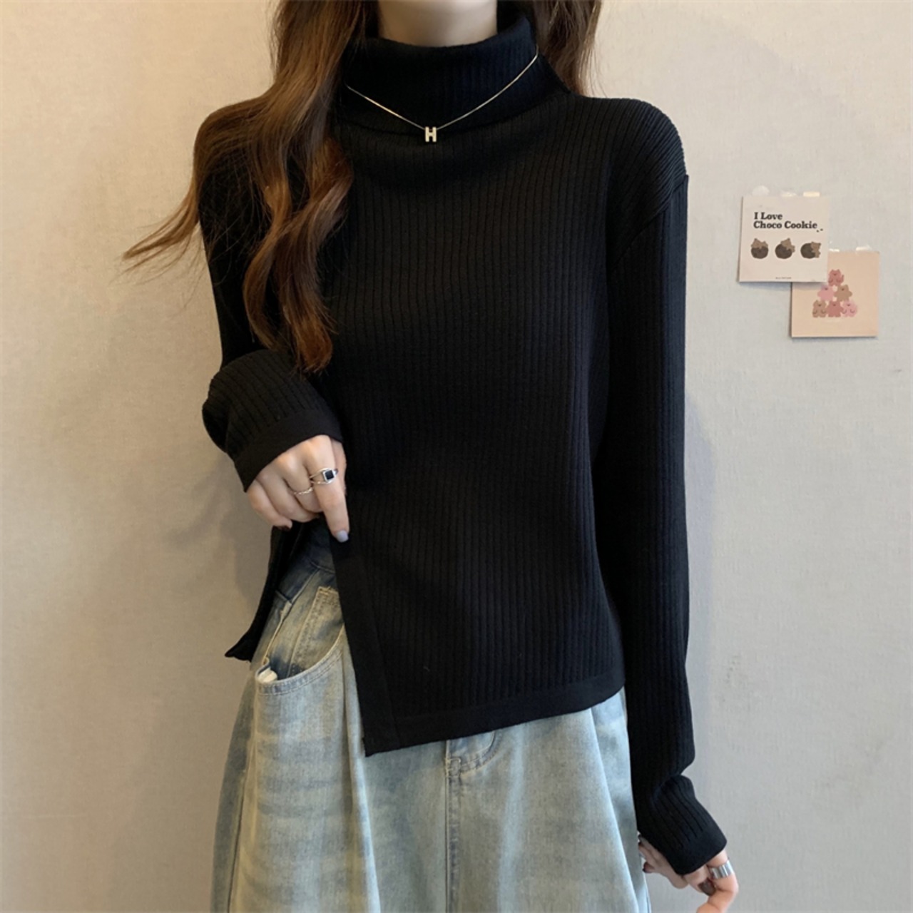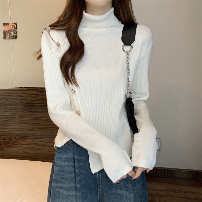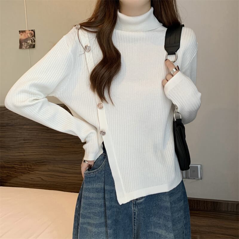 ハイネックニットセーター トップス セーター プルオーバー 白トップス 袖あり 長袖 ボリューム袖 萌袖 ハイネック ワイド Iライン サイドスリット 切り替えデザイン かわいい 大人可愛い きれいめ シンプル カジュアル 大人 上品 おしゃれ お洒落 大人可愛い 大人女子 こなれ感 キュート ガーリー ルーズ 個性的 エレガント 主役級 存在感 無地 柄 ボーダー ストライプ 春 秋 冬 20代 30代 40代 50代 レディース 女性用 ママ ビジネス OL 通勤