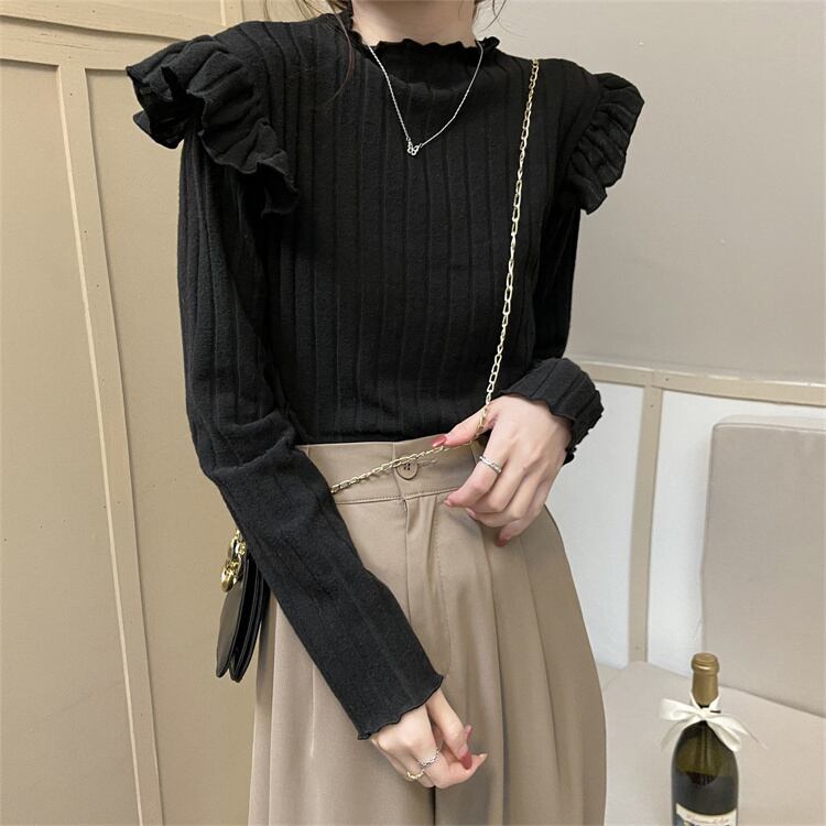肩のフリルがキュートなデザインのニットセーター