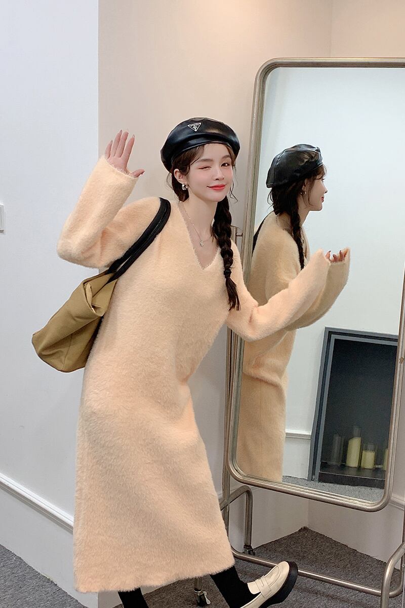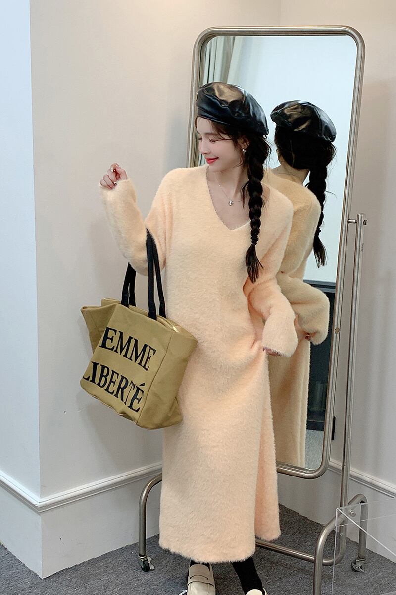 ロングニットワンピース マキシ丈ワンピース 長袖ニットワンピース トップス スカート ワンピース セーター プルオーバー オールインワン 部屋着 ロングスカート ニットスカート 膝下 ロング ロング丈 マキシ マキシ丈 9分丈 アンクル丈 袖あり 長袖 Vネック ストレート ワイド Iライン スマート ニット かわいい 大人可愛い きれいめ シンプル 大人 上品 おしゃれ お洒落 大人可愛い 大人女子 こなれ感 ラブリー キュート ガーリー ルーズ 主役級 存在感 無地 秋 冬