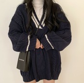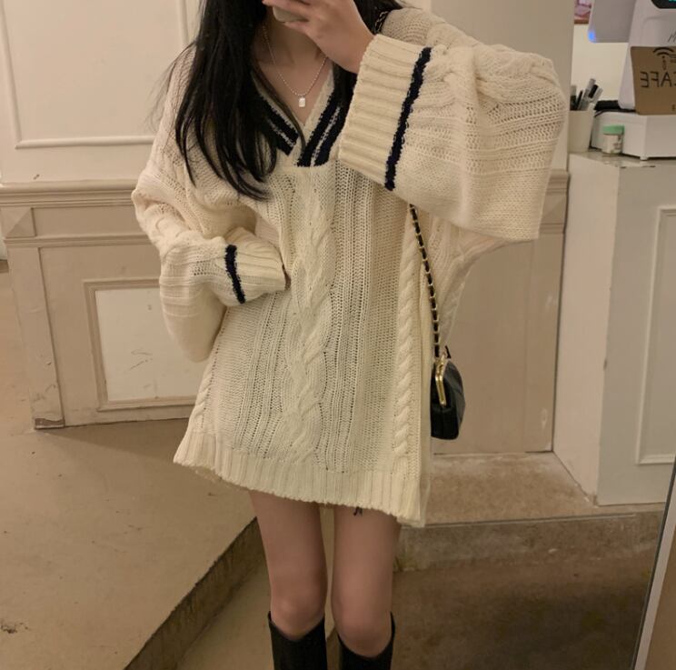 学生風 トップス ニットソー セーター 袖あり 長袖 ボリューム袖 萌袖 Vネック 襟なし ニット かわいい 大人可愛い カジュアル おしゃれ かっこいい レトロ こなれ感 ラフ メンズライク マニッシュ ラブリー 個性的 セクシー モダン 主役級 秋 冬 10代 20代 30代 40代 レディース 女性用 通勤 通学 デート お出かけ 女子会 休日 旅行 着回し 普段使い 重ね着 双子 オルチャン ファッション コーデ スタイル 楽ちん M L XL 2XL 3XL 大きいサイズ ホワイト ネイビー