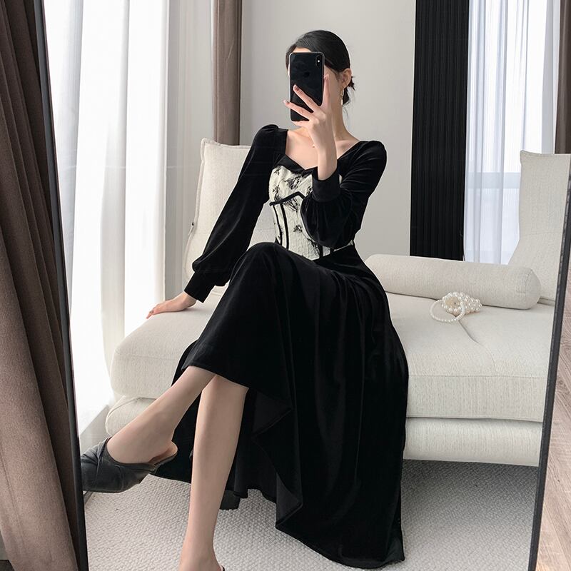 個性的 ワンピース フレアワンピース ミモレ丈 袖あり 長袖 ホルンスリーブ スクエアネック 襟付き フレア Aライン 切り替えデザイン 大人可愛い きれいめ 大人 上品 おしゃれ レトロ 大人女子 こなれ感 キュート 個性的 エレガント モダン 主役級 存在感 フォーマル とろみ感 抜け感 花柄 フラワー 秋 冬 10代 20代 30代 レディース デート お出かけ 女子会 休日 パーティー イベント 旅行 普段使い 韓国 オルチャン ファッション スタイル モテ インスタ映え サイズ S M L 黒