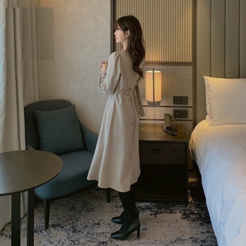 ワンピース プルオーバー ひざ丈 膝下 ミディアム丈 ミドル丈 長袖 Vネック フレア Aライン ウエストマーク かわいい 大人可愛い きれいめ シンプル 大人 上品 おしゃれ 大人女子 こなれ感 ラブリー キュート ガーリー 存在感 フォーマル とろみ感 抜け感 無地 春 秋 20代 30代 レディース OL 通勤 学生 通学 デート お出かけ 公園デビュー 女子会 休日 ホテル レストラン 着回し 普段使い 韓国系 ファッション モテ 体系カバー 脚長 サイズ S M L XL 色展開 黒 ベージュ