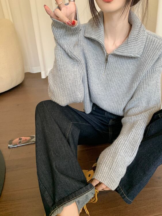 ショート ニット トップス アウター セーター ミニ丈 ショート丈 長袖 ハイネック タートルネック スリム タイト ストレート ファスナー かわいい 大人可愛い シンプル カジュアル 大人 おしゃれ かっこいい 大人女子 こなれ感 ラフ スポーティー ラブリー キュート 個性的 クール モード系 セクシー 存在感 とろみ感 抜け感 無地 秋 冬 10代 20代 30代 レディース 学生 通学 デート お出かけ 公園デビュー 女子会 休日 着回し 普段使い 楽ちん 暖かい 防寒 モテ サイズ S M L