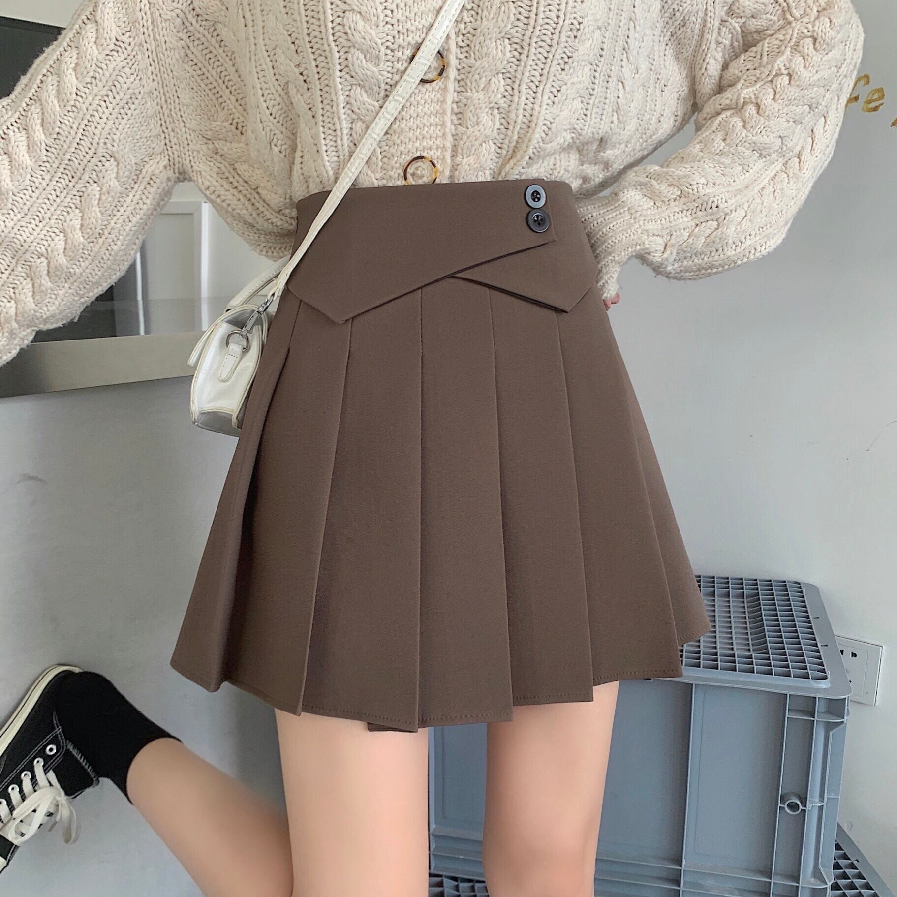 ウエスト部分のデザインがかわいいハイウエストのプリーツスカート。