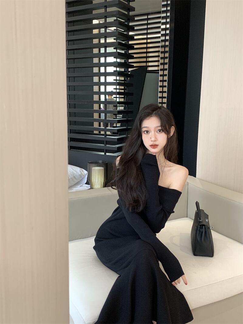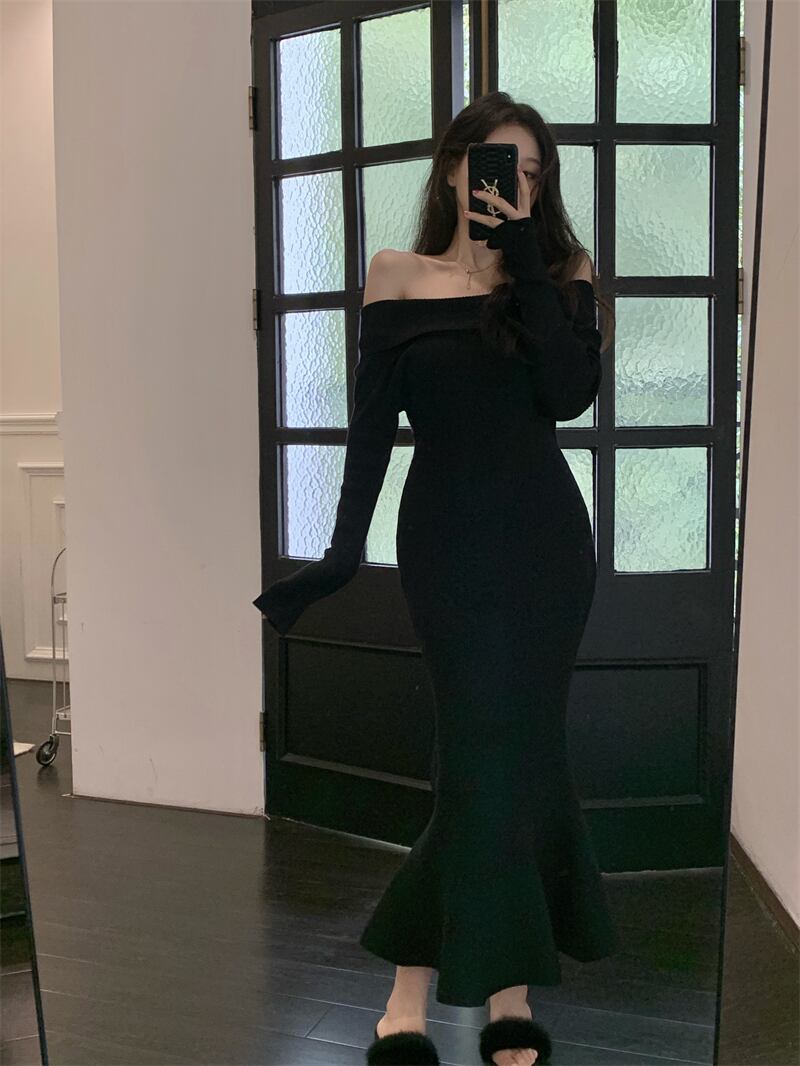 ワンピース ニットワンピース マキシ丈 袖あり 長袖 オフショルダー オフショル スリム タイト マーメイド リブニット 伸縮性 ニット 大人可愛い きれいめ シンプル カジュアル 大人 お洒落 大人女子 こなれ感 セクシー エレガント 主役級 抜け感 無地 春 秋 冬 20代 30代 40代 ママ デート お出かけ 女子会 休日 旅行 着回し 普段使い 重ね着 オルチャン 楽ちん 暖かい モテ 定番 トレンド 流行 インスタ映え S M L ベージュ ブラック