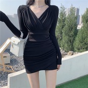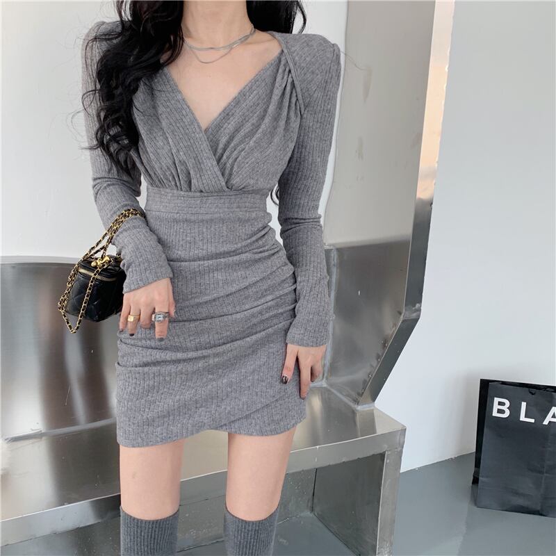 ワンピース ニットワンピース ミニワンピース ミニ丈 膝上 袖あり 長袖 Vネック カシュクール スリム タイト 切り替えデザイン リブニット 伸縮性 ニット 大人可愛い きれいめ シンプル カジュアル 大人 お洒落 大人女子 こなれ感 クール セクシー エレガント 主役級 抜け感 無地 春 秋 冬 20代 30代 40代 ママ デート お出かけ 女子会 休日 旅行 着回し 普段使い 重ね着 韓国系 オルチャン 暖かい モテ 脚長 定番 トレンド 流行 インスタ映え S M L グレー ブラック