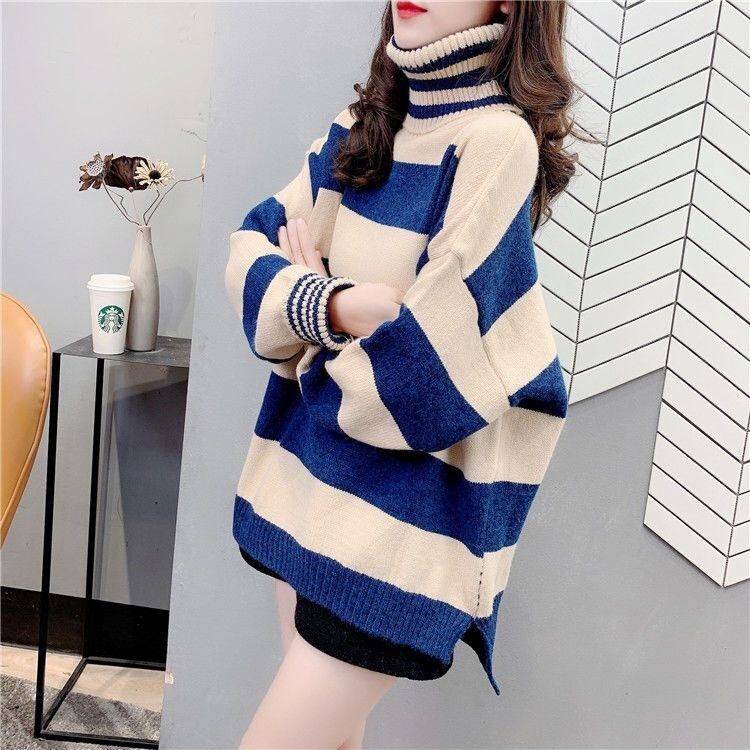 トップス ニットソー ミディアム丈 裏起毛 袖あり 長袖 ドロップショルダー タートルネック ワイド 切り替えデザイン 伸縮性 ニット 厚手 大人可愛い きれいめ シンプル カジュアル 大人 お洒落 大人女子 こなれ感 ガーリー ルーズ 主役級 抜け感 ボーダー 春 秋 冬 20代 30代 40代 ママ 学生 通学 デート お出かけ 女子会 休日 旅行 着回し 普段使い 重ね着 楽ちん 暖かい 体系カバー 定番 トレンド 流行 インスタ映え S M L XL ゆったり ブルー グレー カーキ