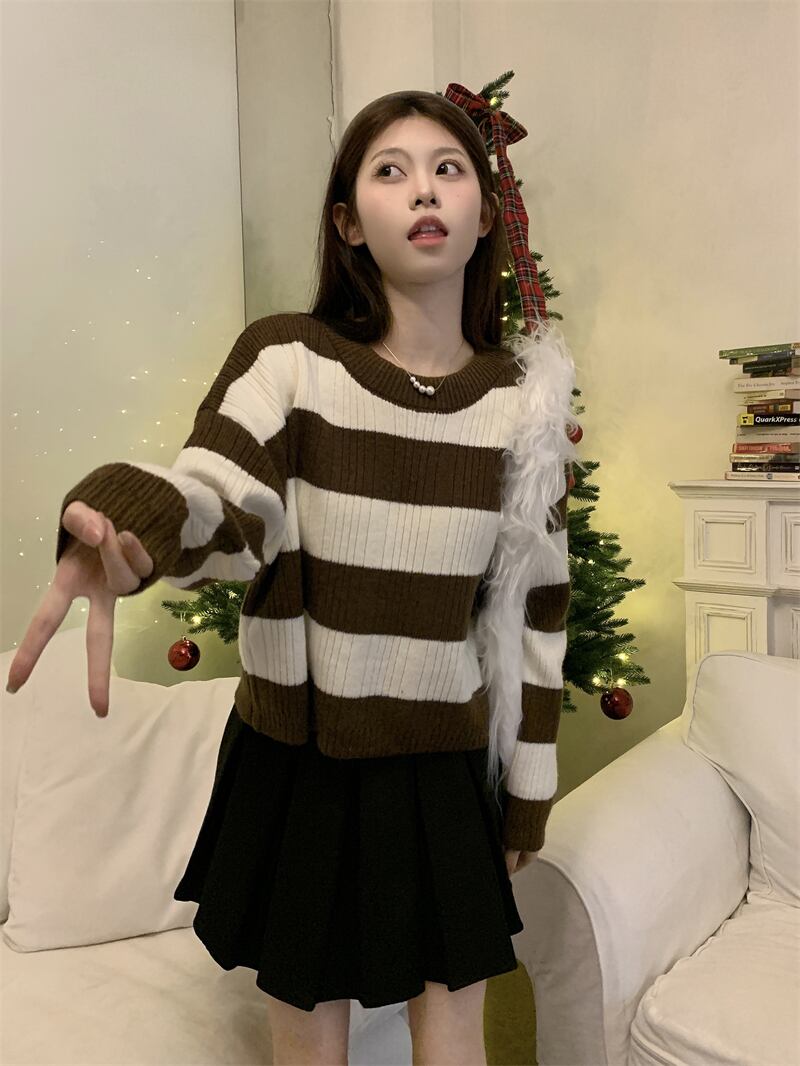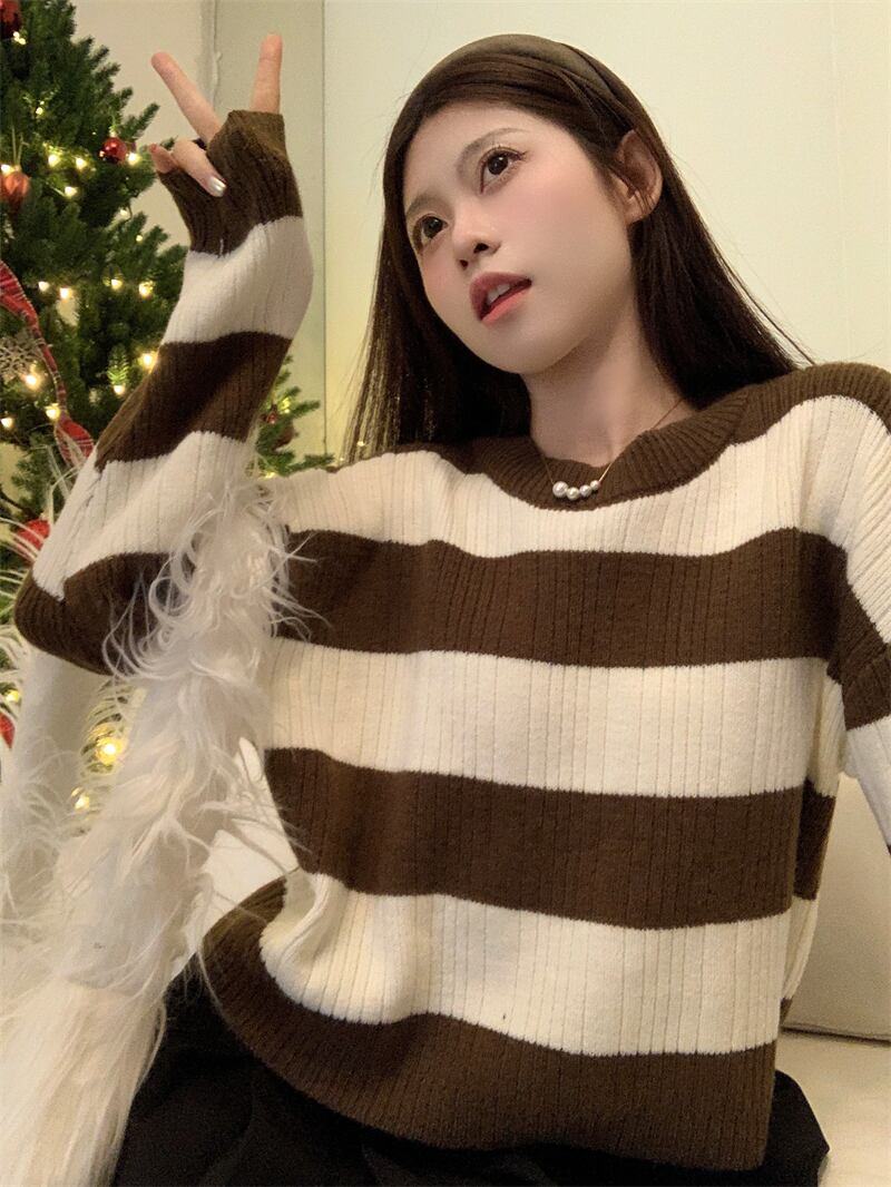トップス ニットソー セーター 袖あり 長袖 Uネック ラウンドネック ニット かわいい 大人可愛い きれいめ シンプル カジュアル 大人 上品 おしゃれ お洒落 レトロ 大人可愛い 大人女子 こなれ感 ラフ ラブリー キュート とろみ感 抜け感 ボーダー 春 秋 冬 10代 20代 30代 40代 OL 通勤 学生 通学 デート お出かけ 公園デビュー 女子会 お泊まり 休日 パーティー イベント リゾート 旅行 着回し 普段使い 重ね着 お揃い 双子 韓国 韓国系 モテ 流行