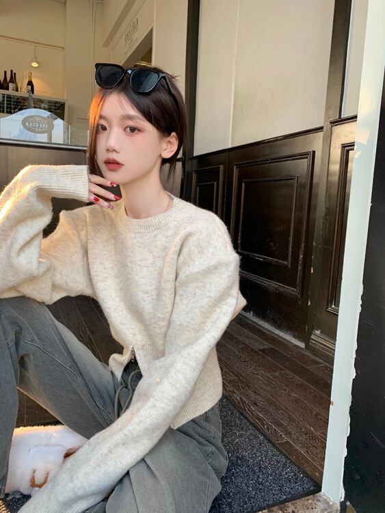 トップス ニットソー セーター ショート ショート丈 袖あり 長袖 ラウンドネック ストレート ワイド Iライン スリット ニット かわいい 大人可愛い きれいめ シンプル カジュアル 大人 上品 おしゃれ お洒落 レトロ 大人女子 こなれ感 ラフ ラブリー キュート ガーリー ルーズ 抜け感 無地 春 秋 冬 10代 20代 30代 レディース デート お出かけ 女子会 休日 韓国 韓国系 オルチャン ファッション コーデ スタイル 楽ちん モテ 定番 プチプラ トレンド 流行 インスタ映え ゆったり