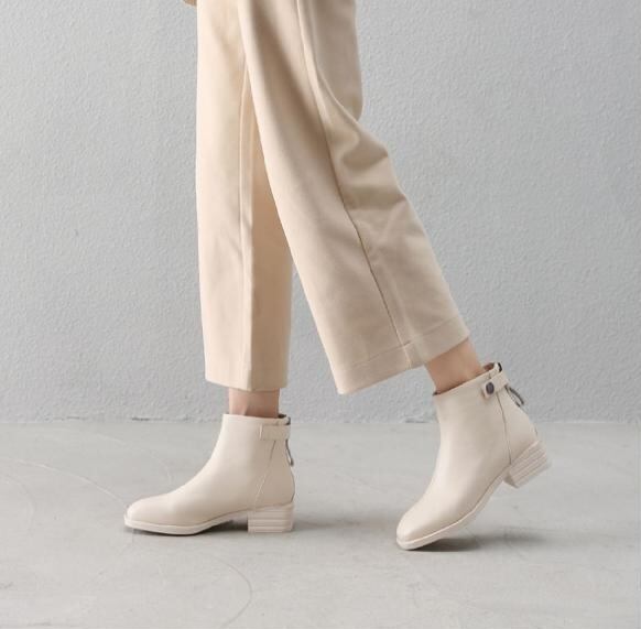 どんなコーデでも合わせやすいレザーショートブーツ。