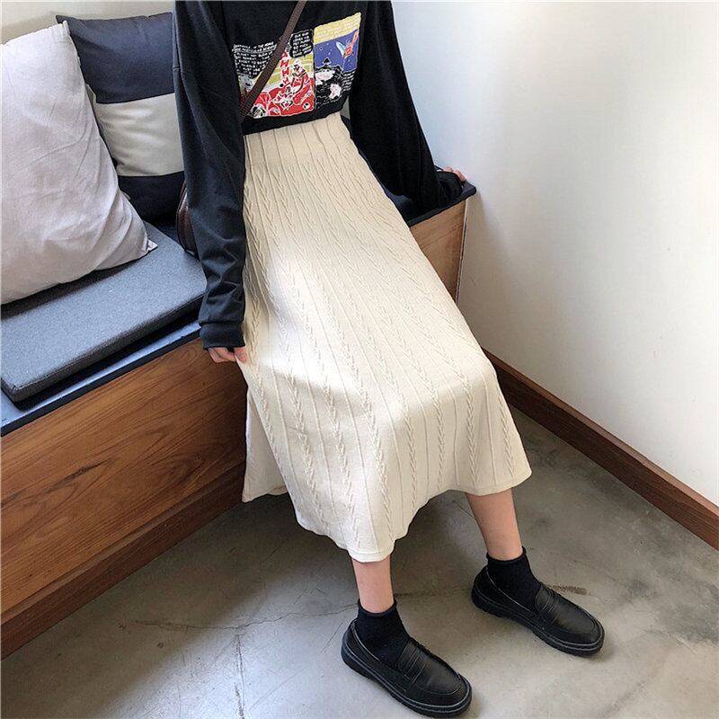 レトロ ニット スカート ロングスカート ニットスカート ミモレ丈 ロング丈 Aライン ハイウエスト 編み込み かわいい 大人可愛い きれいめ シンプル カジュアル 大人 上品 おしゃれ 大人女子 こなれ感 ラフ ラブリー キュート ガーリー 個性的 存在感 とろみ感 抜け感 無地 春 秋 冬 10代 20代 30代 レディース OL 通勤 学生 通学 デート お出かけ 公園デビュー 女子会 休日 着回し 普段使い 楽ちん 暖かい モテ 体系カバー フリーサイズ ゆる 色展開 白 ホワイト 黒 ブラック