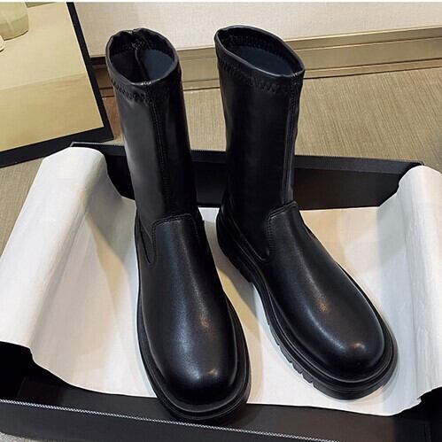 ごつめのソールがコーディネートのポイントになる厚底ショートブーツ。