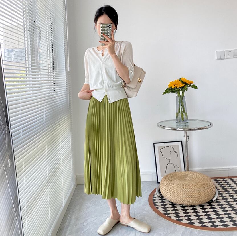 スカート プリーツスカート ミモレ丈 Aライン プリーツ ウエストゴム かわいい 大人可愛い きれいめ シンプル 大人 上品 おしゃれ 大人女子 こなれ感 キュート 主役級 存在感 オールシーズン 10代 20代 30代 40代 50代 ママ オフィス OL 通勤 学生 通学 デート お出かけ 女子会 休日 旅行 着回し ファッション コーデ モテ 定番 流行 インスタ映え サイズ S M L XL 色展開 ホワイト ブラック ブルー グリーン イエロー パステルカラー 大人カラー 春カラー カラバリ