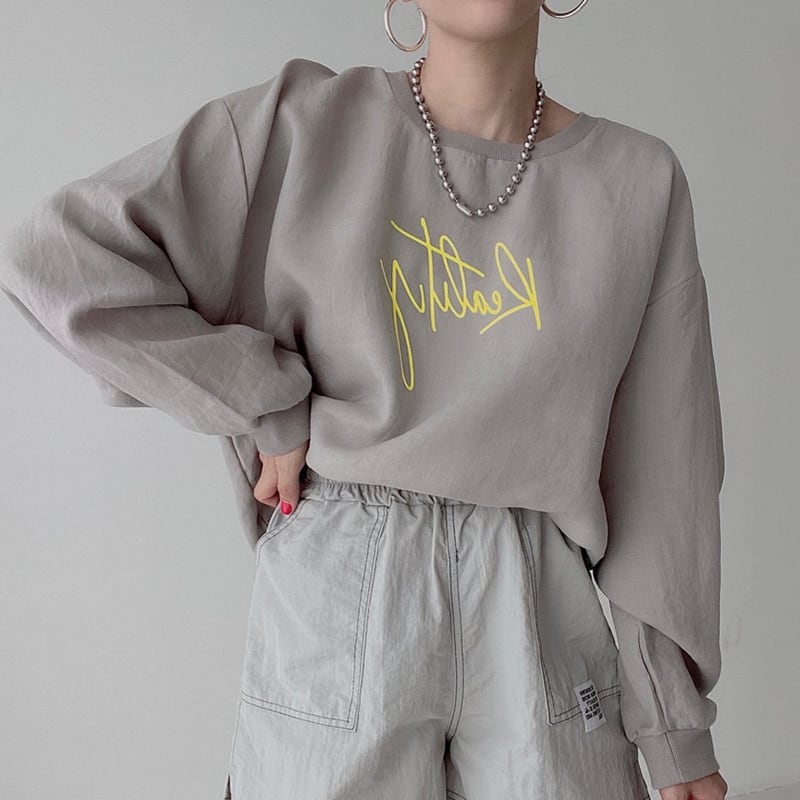 カジュアルながら女性らしいシルエットを演出するロゴスウェット。