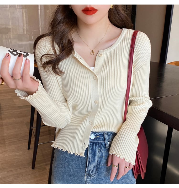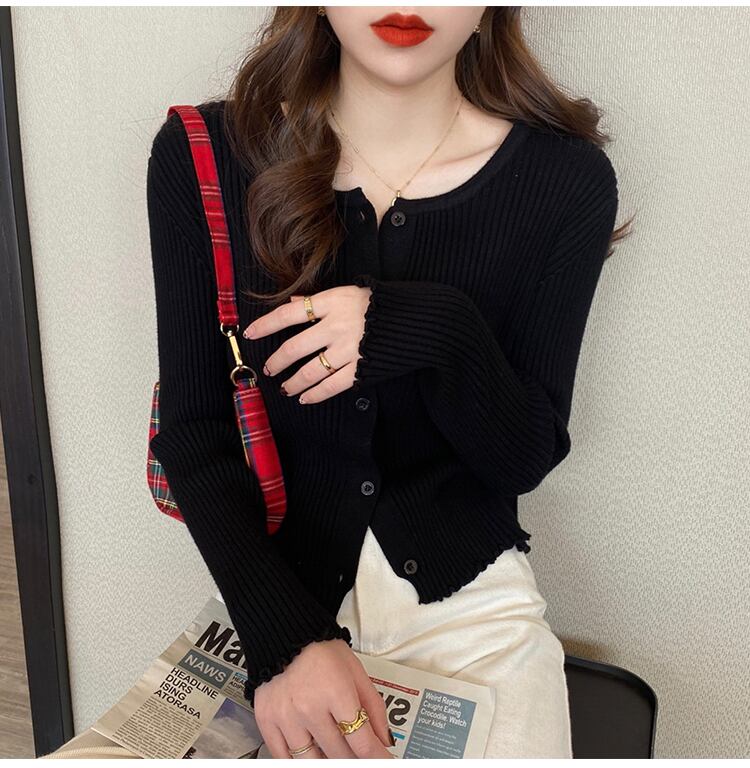 ニット トップス カーディガン ショート丈 長袖 ラウンドネック ストレート フリル リブ 前開き 羽織り かわいい 大人可愛い きれいめ カジュアル シンプル 大人 上品 おしゃれ お洒落 大人女子 こなれ感 ラフ キュート 存在感 とろみ感 抜け感 無地 秋 冬 10代 20代 30代 レディース ママ OL 通勤 学生 通学 デート お出かけ 公園デビュー 女子会 休日 着回し 普段使い 重ね着 楽ちん 暖かい 防寒 モテ 体系カバー 韓国 ファッション フリーサイズ 色展開 白 黒 赤 緑 黄色