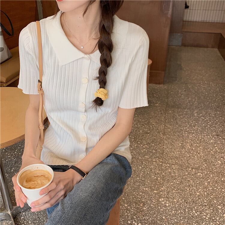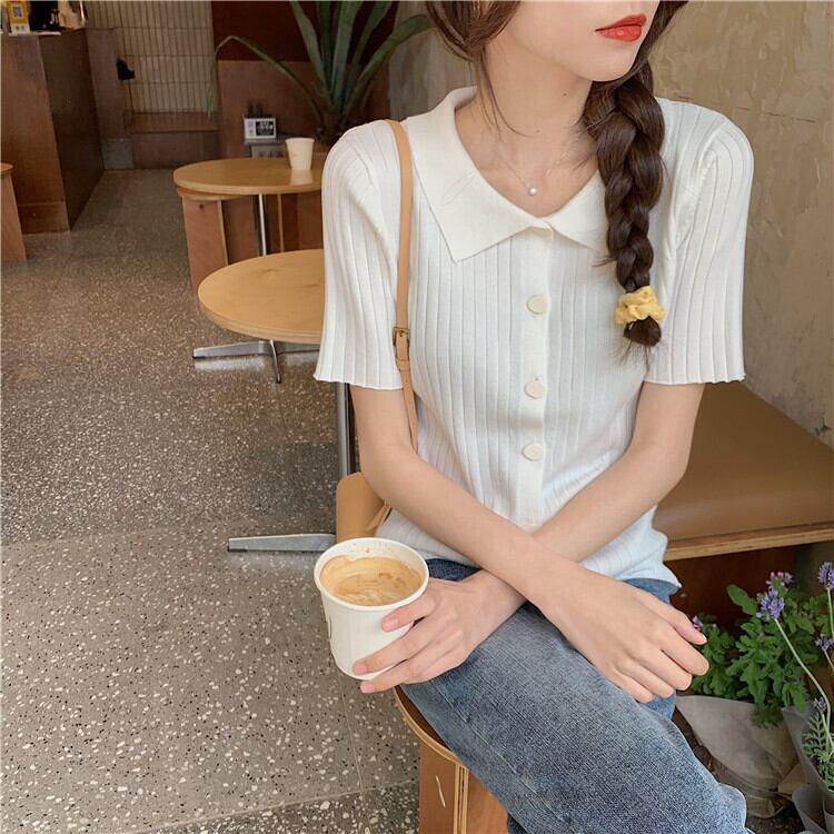 トップス カットソー ニット ミディアム丈 袖あり 半袖 襟付き ポロ襟 ボタン ワイド リブ 前開き 大人可愛い きれいめ シンプル カジュアル 大人 お洒落 レトロ 大人女子 こなれ感 ガーリー 主役級 抜け感 無地 春 夏 秋 20代 30代 40代 通勤 通学 デート お出かけ 女子会 休日 旅行 海 普段使い 重ね着 楽ちん 定番 トレンド 流行 インスタ映え ワンサイズ ゆったり ピンク ホワイト グリーン ブラック