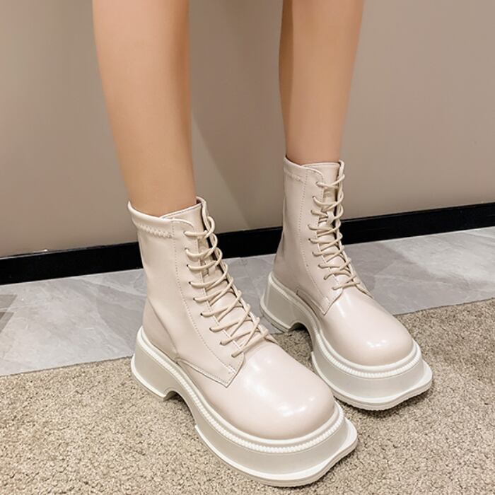 編み上げ レースアップ トラックソール ブーツ ブリティッシュスタイル PU おしゃれ かっこいい ガーリー メンズライク マニッシュ ボーイッシュ 主役級 通勤 通学 デート お出かけ デイリー 普段使い 高見え 22.5cm 23.0cm 23.5cm 24.0cm 24.5cm 25.0cm 黒 ブラック ベージュ AS10214