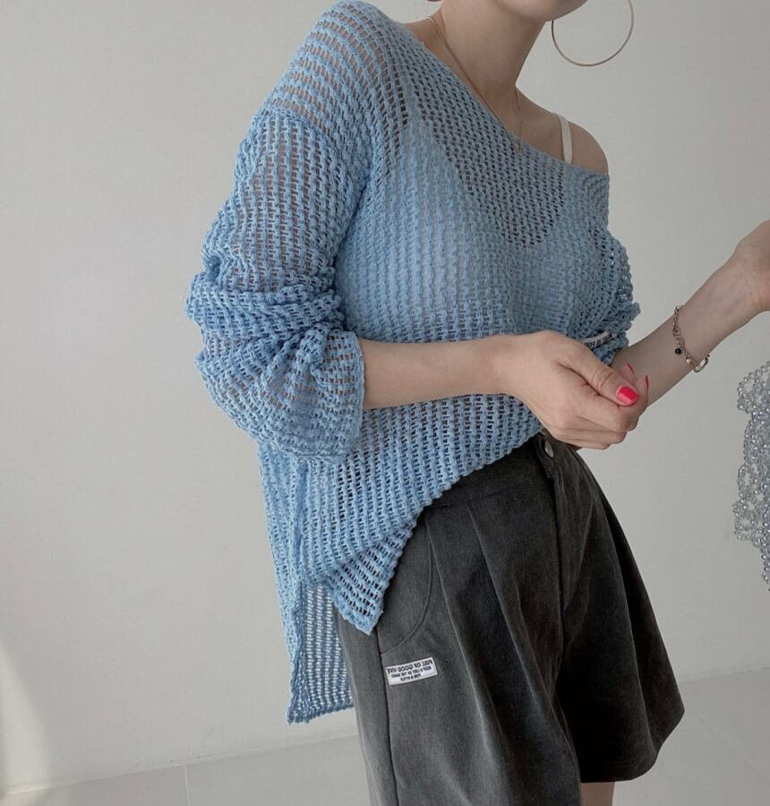 インナーが透ける編み地で、着こなし遊びができるニット。