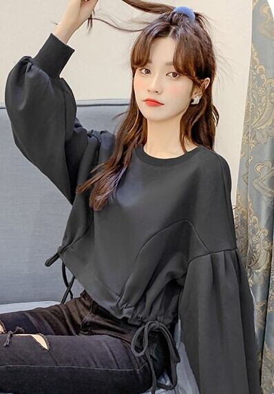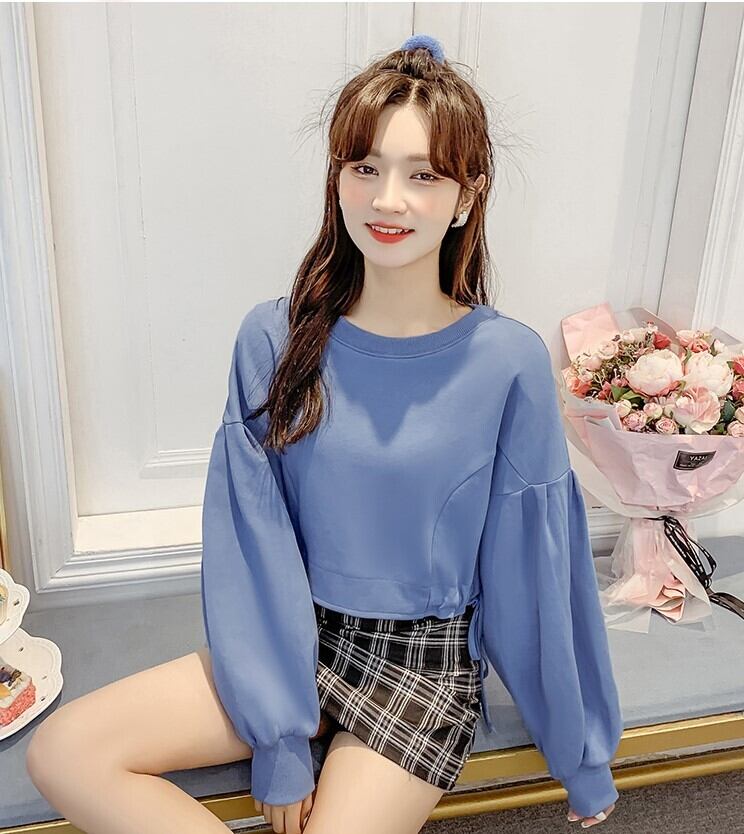 トップス セーター プルオーバー トレーナー ミニ丈 ショート ショート丈 長袖 ランタンスリーブ ラウンドネック ストレート ワイド かわいい 大人可愛い シンプル カジュアル 大人 おしゃれ お洒落 こなれ感 ラフ メンズライク マニッシュ 個性的 クール 主役級 存在感 とろみ感 抜け感 無地 春 秋 10代 20代 30代 レディース 学生 通学 デート お出かけ 公園デビュー 女子会 休日 着回し 普段使い 韓国系 ファッション 楽ちん モテ 体系カバー S M L XL 色展開 青 グレー