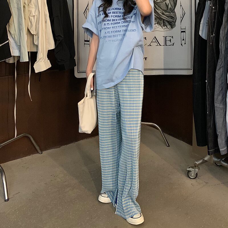 チェック柄 ボトムス パンツ ワイドパンツ ストレートパンツ ロング ロング丈 ストレート ワイド ポケット ハイウエスト ウエストゴム 薄手 かわいい カジュアル おしゃれ お洒落 かっこいい レトロ ラフ メンズライク マニッシュ ボーイッシュ ラブリー キュート ガーリー 柄 チェック柄 格子柄 春 夏 10代 20代 30代 レディース 女性用 ママ 学生 通学 お出かけ 公園 女子会 休日 アウトドア 韓国 韓国系 ファッション 楽ちん モテ 体型カバー フリーサイズ 色展開 黒 青 緑 ピンク