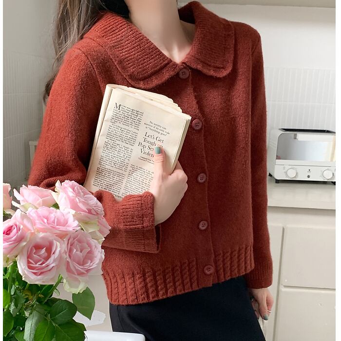 ショート丈が可愛い襟付きニットカーディガン。