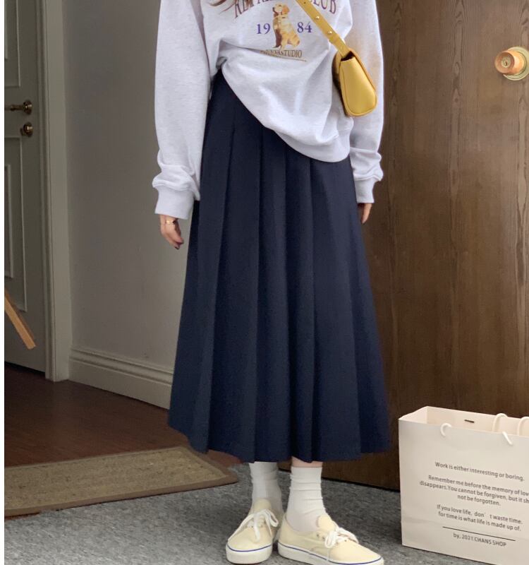 太プリーツ ロングスカート Aライン レトロ ロング丈 フレア きれいめ シンプル おしゃれ こなれ感 無地 通勤 通学 着回し 普段使い S M L 黒 ブラック 茶色 ブラウン ネイビー AS10218