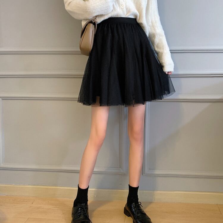 チュール スカート ミニ丈 フレア かわいい おしゃれ 大人可愛い ラブリー キュート ガーリー デート お出かけ 着回し 普段使い 韓国系 ファッション S M L XL 2XL 3XL 4XL 5XL 大きいサイズ 黒 ブラック AS10228