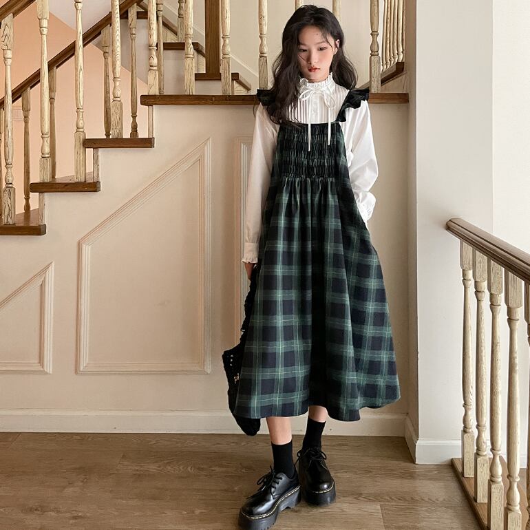 サロペット ワンピース チェック柄 スカート ミモレ丈 ロング丈 フレア かわいい カジュアル 上品 おしゃれ 大人可愛い キュート ガーリー 通勤 通学 デート お出かけ 着回し 普段使い 体系カバー XS S M 赤 レッド 緑 グリーン AS10231