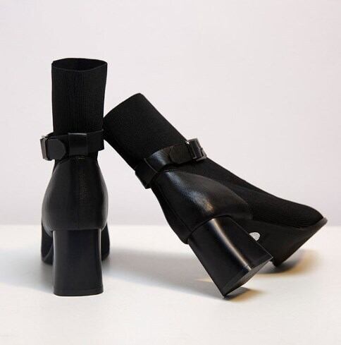 ポインテッドトゥできれいめな印象のショートブーツ。
