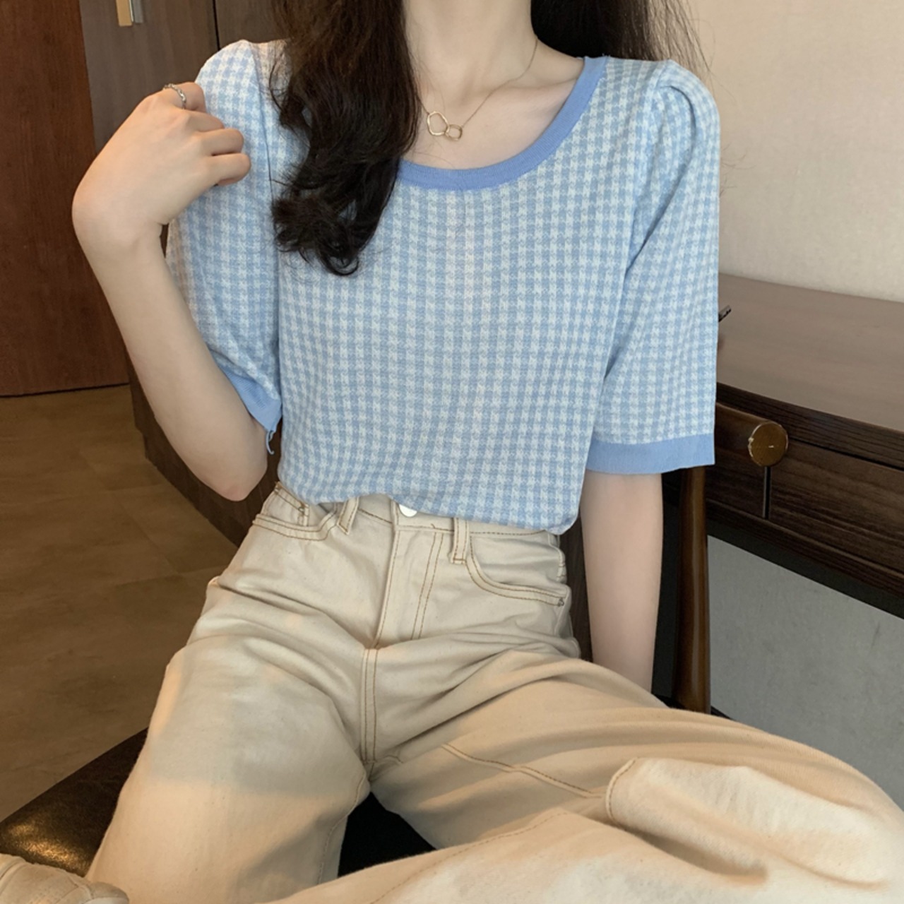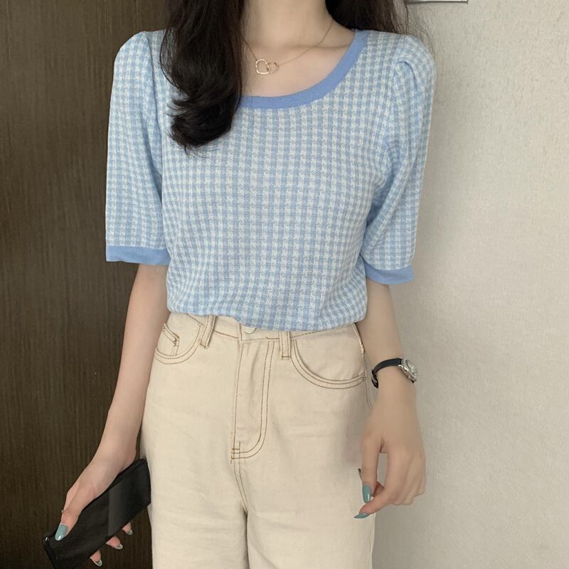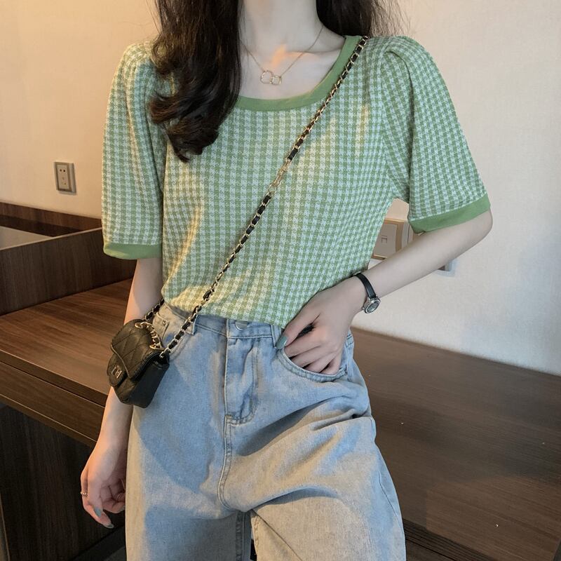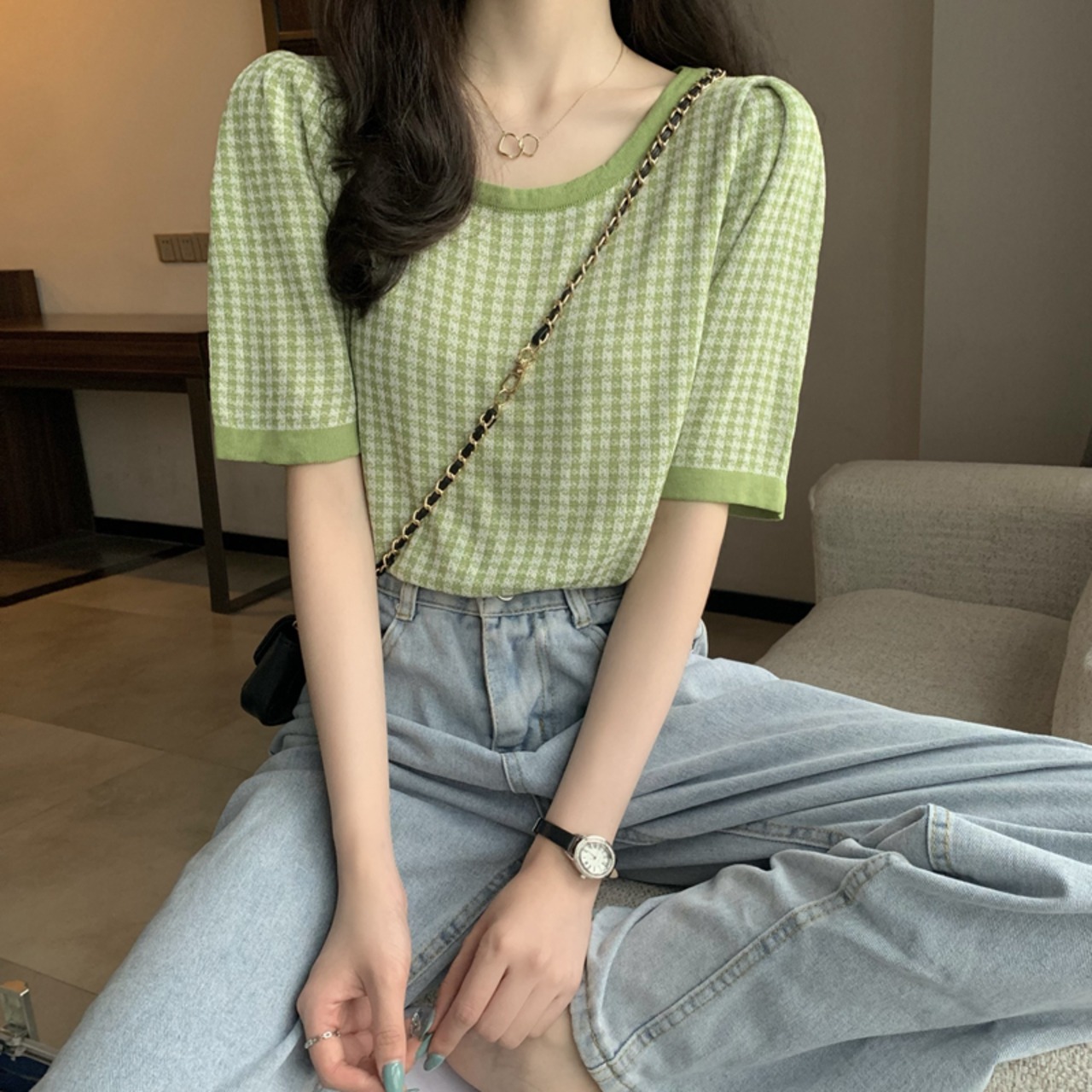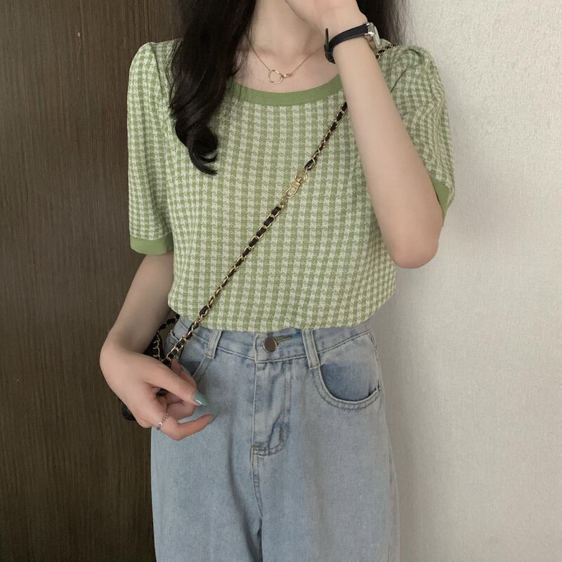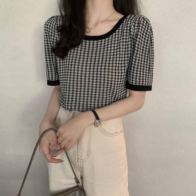 春ニット 春カジュアルニット 千鳥格子ニット 半袖ニットセーター カジュアルニット トップス セーター プルオーバー 袖あり 半袖 5分袖 五分袖 Uネック ラウンドネック スリム 細身 スマート ニット かわいい 大人可愛い きれいめ シンプル カジュアル 大人 上品 おしゃれ お洒落 レトロ 大人可愛い 大人女子 こなれ感 ラフ ラブリー キュート ガーリー エレガント 主役級 存在感 柄 チェック柄 格子柄 千鳥格子 春 夏 10代 20代 30代 40代 50代