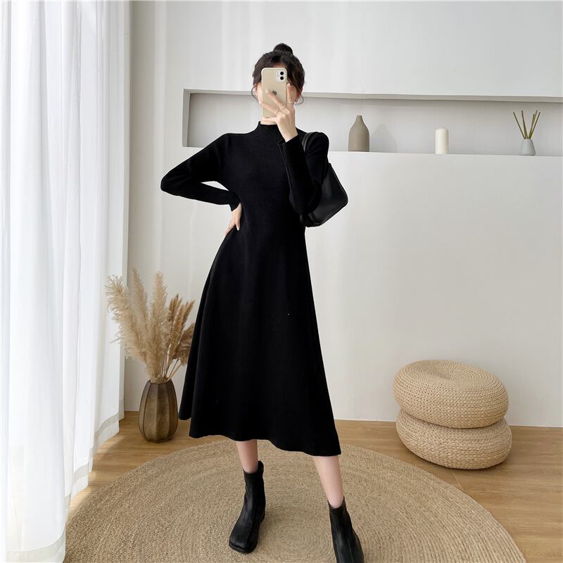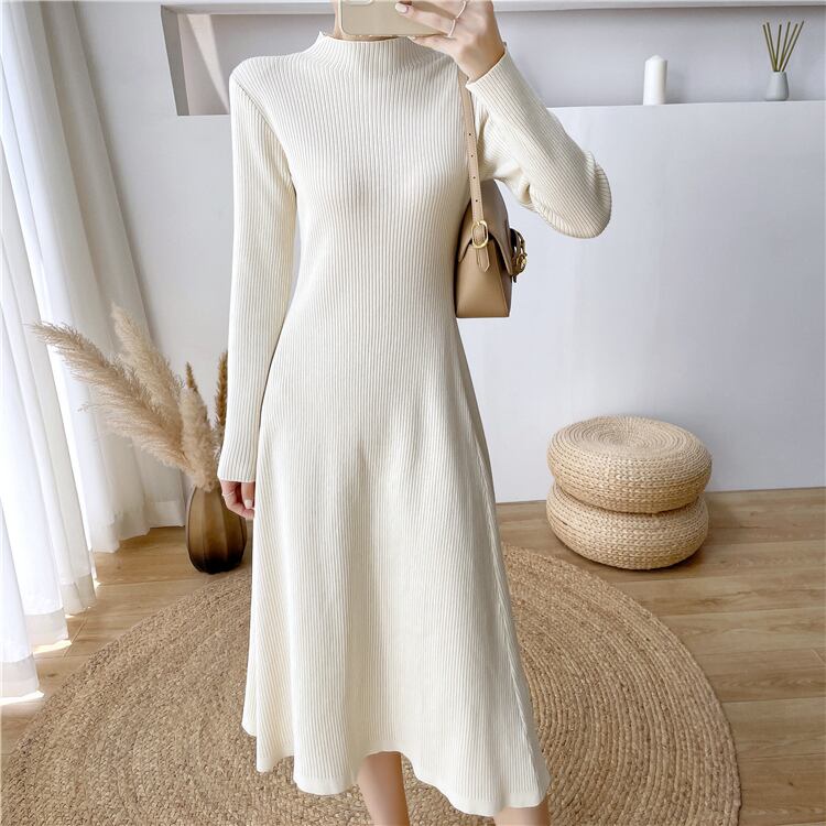 ニット ワンピース ニットソー セーター プルオーバー ロングワンピ ワンピドレス ミモレ丈 ロング丈 長袖 ハイネック タートルネック Aライン リブ かわいい 大人可愛い きれいめ シンプル ナチュラル カジュアル 大人 上品 おしゃれ 大人女子 こなれ感 ラフ ラブリー キュート ガーリー 存在感 とろみ感 抜け感 無地 春 秋 10代 20代 30代 レディース ママ マタニティ 通勤 学生 通学 デート お出かけ 公園デビュー 女子会 休日 モテ サイズ S M L XL 色展開 白 ホワイト