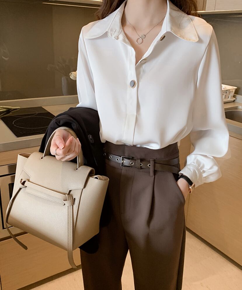 トップス シャツ ブラウス 白シャツ 袖あり 長袖 Vネック 襟付き かわいい 大人可愛い きれいめ 大人 上品 おしゃれ かっこいい 大人女子 こなれ感 キュート 個性的 クール モード系 エレガント モダン 主役級 存在感 フォーマル とろみ感 抜け感 無地 オールシーズン 10代 20代 30代 レディース 通勤 通学 デート お出かけ 女子会 お泊まり 休日 旅行 着回し 普段使い ファッション コーデ スタイル モテ サイズ M XL 2XL 3XL 色展開 ホワイト レッド 大人カラー