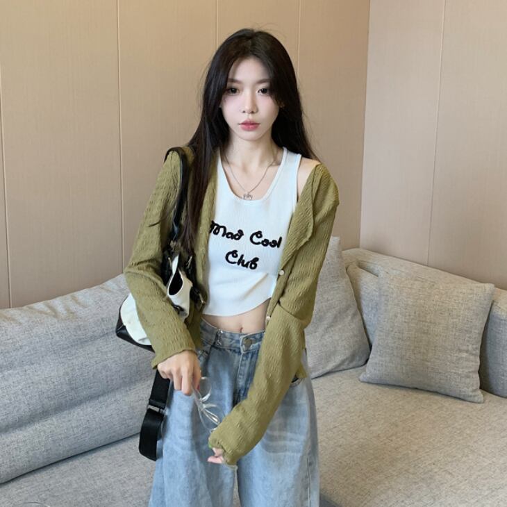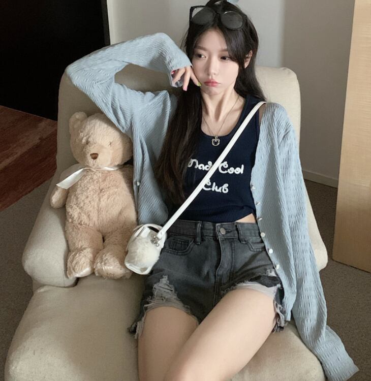 ロングスリーブ カーディガン トップス 長袖 きれいめ シンプル おしゃれ こなれ感 ラフ お出かけ 着回し 普段使い 韓国系 ファッション フリーサイズ 青 ブルー 緑 グリーン アイボリー AS10251