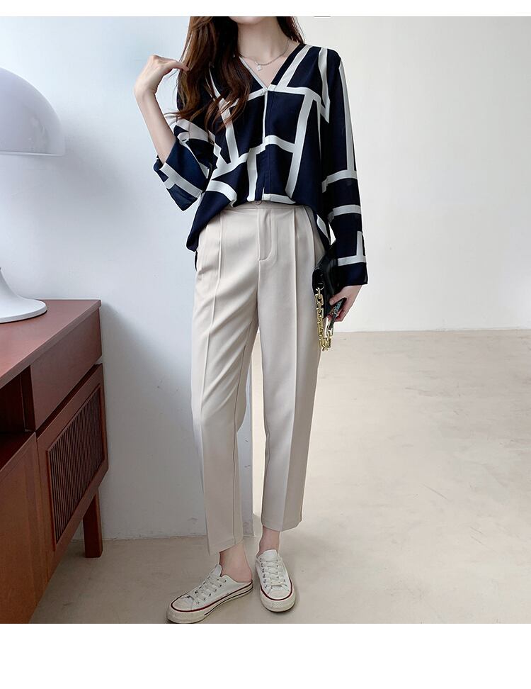 Vネックのエレガントなシフォンブラウス