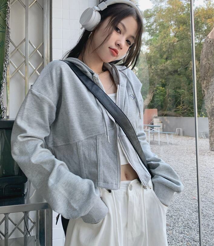 すっきりとした印象のショート丈パーカー。