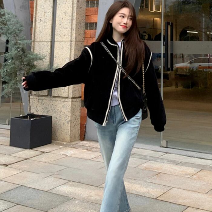 ステッチ ジャケット アウター 長袖 シンプル カジュアル おしゃれ こなれ感 ラフ メンズライク 秋 冬 通勤 通学 旅行 S M L XL 2XL 3XL 大きいサイズ 黒 ブラック AS10260
