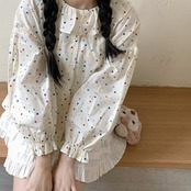 カラフル ドット ブラウス フリル トップス ボリューム袖 かわいい おしゃれ レトロ ラフ キュート ガーリー 通勤 通学 デート 体系カバー S M AS10266