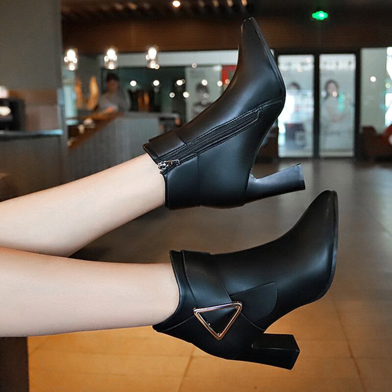 レディース ブーツ ショートブーツ ヒール ポインテッドトゥ シンプル カジュアル サイドジッパーベルト TS15366