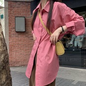 ピンク トップス ロング丈 シンプル おしゃれ かっこいい こなれ感 ラフ クール 無地 春 夏 通勤 通学 お出かけ 着回し 普段使い 重ね着 体系カバー ゆる フリーサイズ AS10280