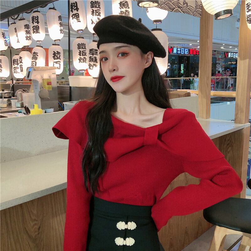 トップス ニットソー セーター プルオーバー ニット 長袖 リボン スリム タイト 細身 リブ リブニット かわいい 大人可愛い きれいめ シンプル カジュアル 大人 上品 おしゃれ お洒落 大人女子 こなれ感 ラフ ラブリー キュート ガーリー クール 存在感 とろみ感 抜け感 無地 春 秋 冬 10代 20代 30代 レディース OL 通勤 学生 通学 デート お出かけ 公園デビュー 女子会 休日 着回し 普段使い モテ フリーサイズ 色展開 レッド ホワイト ブラック