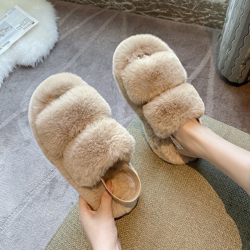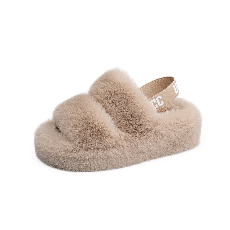 ローヒールでフラットなファーサンダル