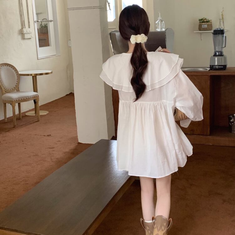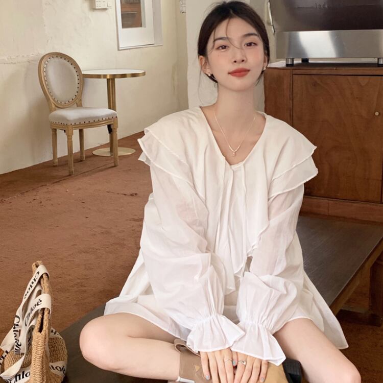 ビッグカラー ブラウス 透け感 トップス 長袖 ボリューム袖 フレア きれいめ 上品 おしゃれ こなれ感 個性的 主役級 春 夏 通勤 通学 お出かけ 着回し 普段使い 体系カバー S M L XL 2XL 3XL 4XL 大きいサイズ 白 ホワイト ピンク AS10292