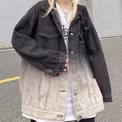 グラデーション デニム ジャケット アウター 長袖 大人可愛い カジュアル おしゃれ こなれ感 メンズライク ボーイッシュ 個性的 クール 通勤 通学 お出かけ アウトドア 旅行 韓国系 ファッション 楽ちん 体系カバー S M L XL 2XL ゆったり モノトーン 白黒 AS10298