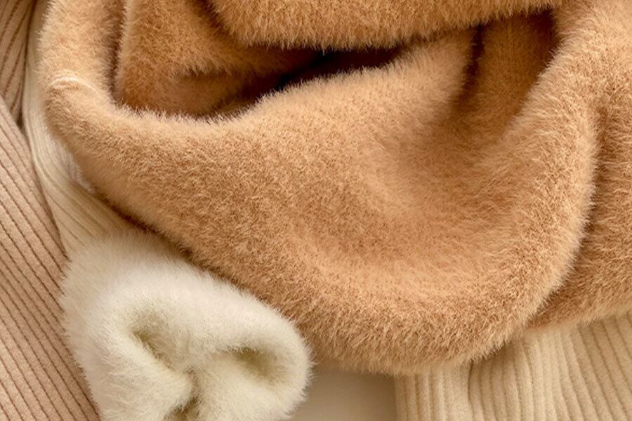 ハイネックで首元暖かく、リブ素材でストレッチ性があり着心地抜群です。